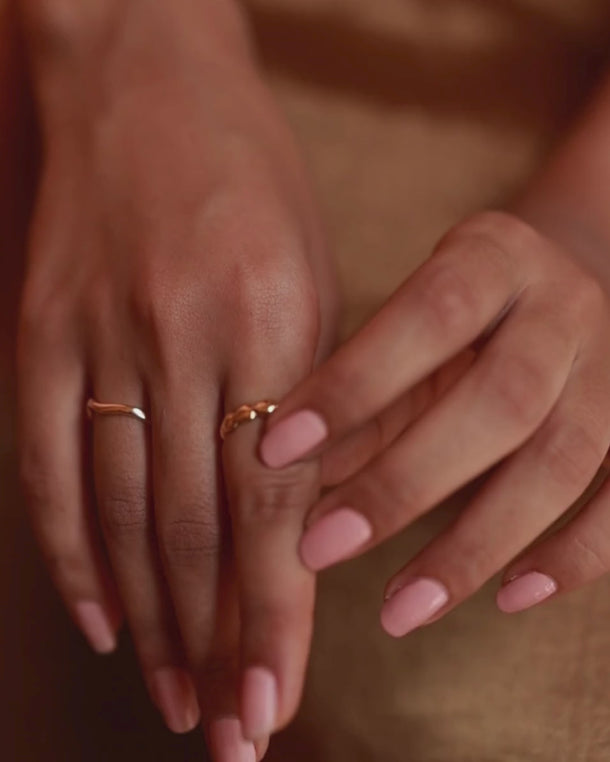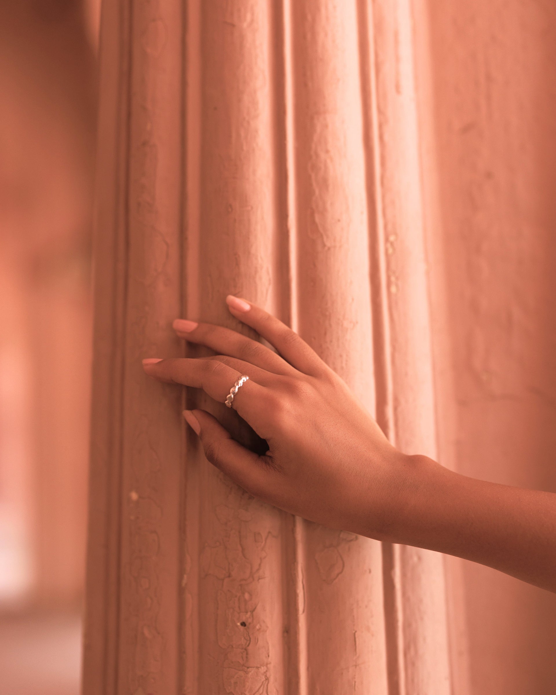 Adaa is a simple sculptural ring braided from a sequence of peepal patti leaves. Fluid yet structured, it wraps the finger with subtle strength - elegant, bold, and effortlessly refined in radiant silver and 18K plated yellow gold. Wear it solo as a statement or stack it for a layered look..